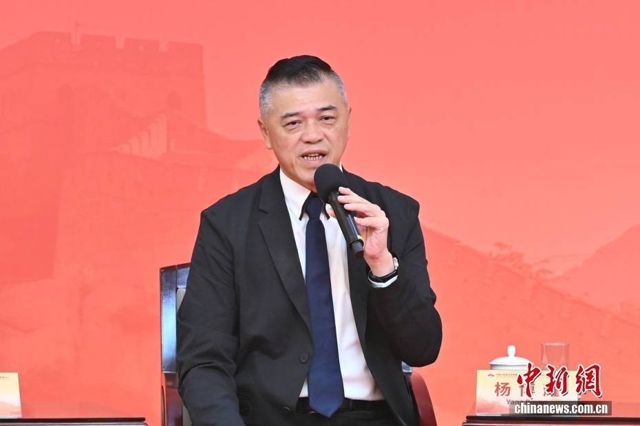 9月1日下午,中国人民抗日战争暨世界反法西斯战争胜利80周年纪念活动新闻中心举办第二场记者见面会,缅甸中华总商会会长林文猛、马来西亚吉隆坡广东义山主席杨博耀、斐济华人文化艺术经济联合会荣誉会长方志伟、西班牙中国和平统一促进会会长徐松华、澳大利亚悉尼华星艺术团团长余俊武等华侨华人代表介绍华侨华人在世界各地举行的纪念活动及其对抗战的贡献等方面情况,并回答记者提问。图为马来西亚吉隆坡广东义山主席杨博耀在见面会上发言。中新社记者 赵文宇 摄
