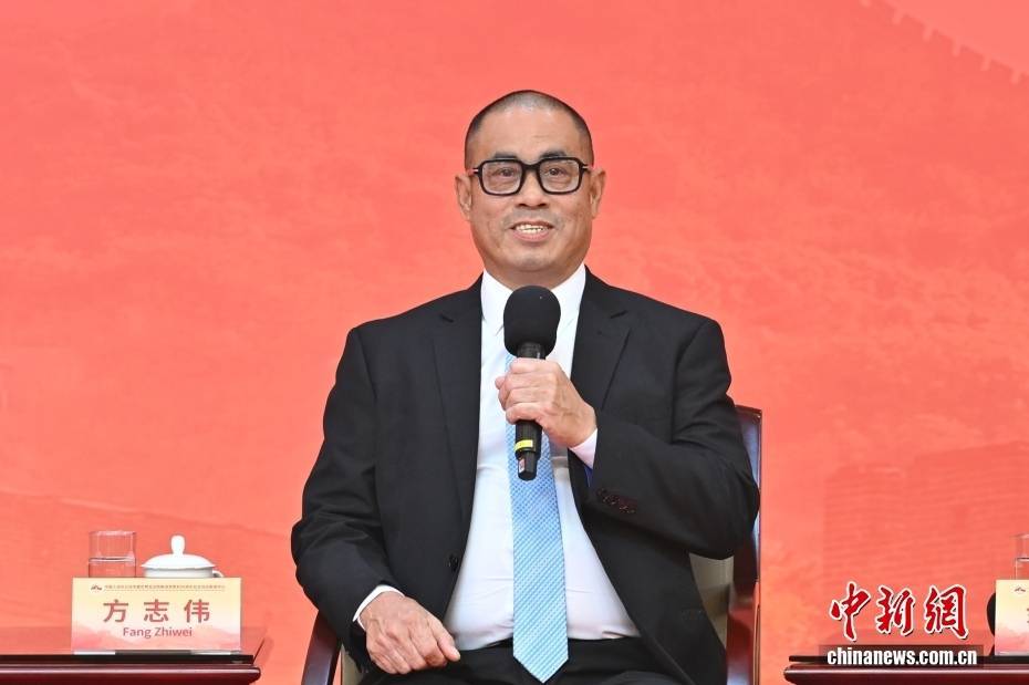 9月1日下午,中国人民抗日战争暨世界反法西斯战争胜利80周年纪念活动新闻中心举办第二场记者见面会,缅甸中华总商会会长林文猛、马来西亚吉隆坡广东义山主席杨博耀、斐济华人文化艺术经济联合会荣誉会长方志伟、西班牙中国和平统一促进会会长徐松华、澳大利亚悉尼华星艺术团团长余俊武等华侨华人代表介绍华侨华人在世界各地举行的纪念活动及其对抗战的贡献等方面情况,并回答记者提问。图为斐济华人文化艺术经济联合会荣誉会长方志伟在见面会上发言。中新社记者 赵文宇 摄